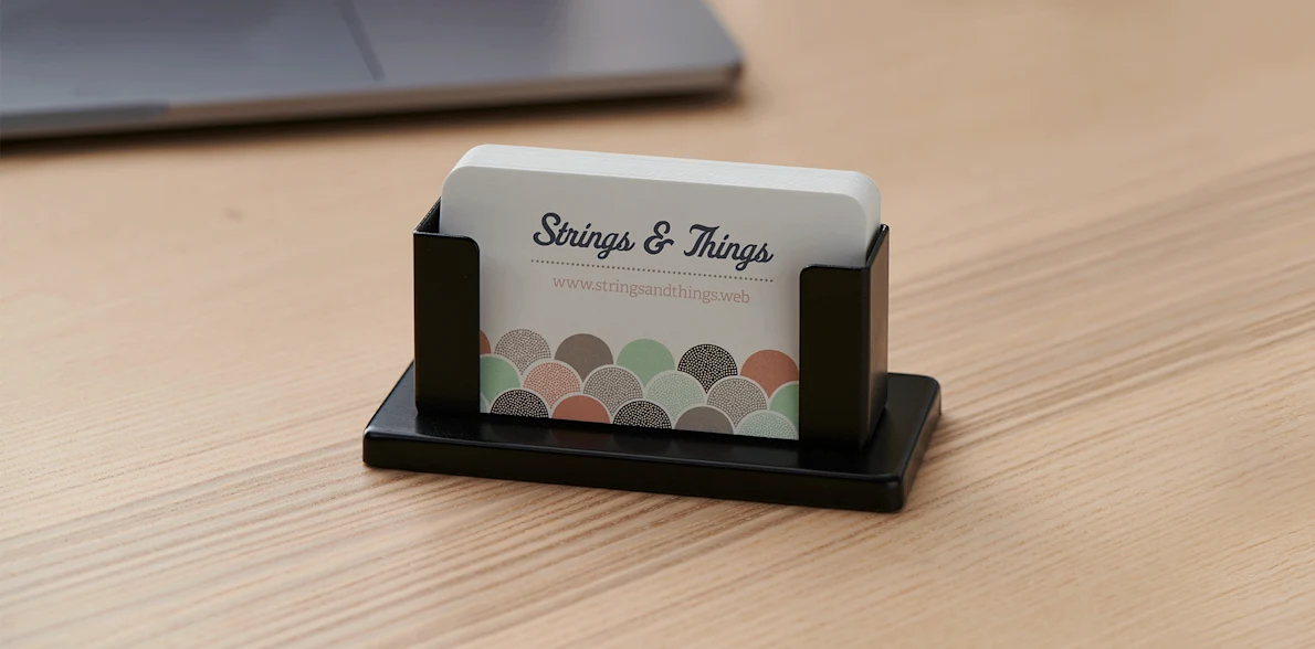 The steel desk business card holder, made from high-quality stainless steel, offers a sleek and durable solution for displaying and organizing your business cards. Its minimalist design and polished finish add a touch of sophistication to any professional workspace.